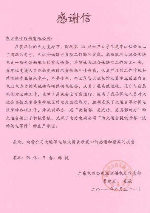 8月23日,世界大学生运动会在深圳圆满落幕,广州集客国际货运代理有限公司作为大运会唯一保电企业见证了世界大学生体育运动的蓬勃发展。广州集客国际货运代理有限公司技术中心系统部与工程部坚守“忠于职守,全力以赴,誓保大运电网安全”的信念,联手实现了大运保供电期间系统零故障、零缺陷的目标。