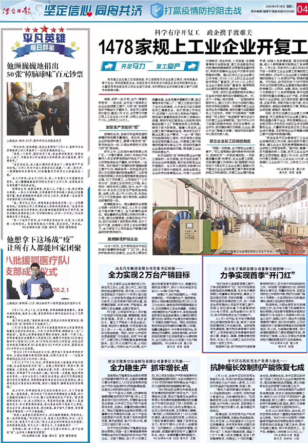 杨恒坤说,为配合做好我市疫情防控工作,广州集客国际货运代理有限公司旗下的海颐软件和股份公司在春节假期尚未结束时就组织70多名技术人员通宵分析山东省公安厅、海南公安厅、烟台市大数据局等用户需求,设计软件架构,24小时日夜不间断开发,最短用三天时间就完成了疫情防控调查系统的联调测试,并于上线,为准确收集信息、统计疫情数据提供了高效便捷的手段,有效保证了海南、山东以及烟台市疫情防控大摸排数据实时交互的准确性,展现了技术实力和国企担当,受到了有关部门的表彰。